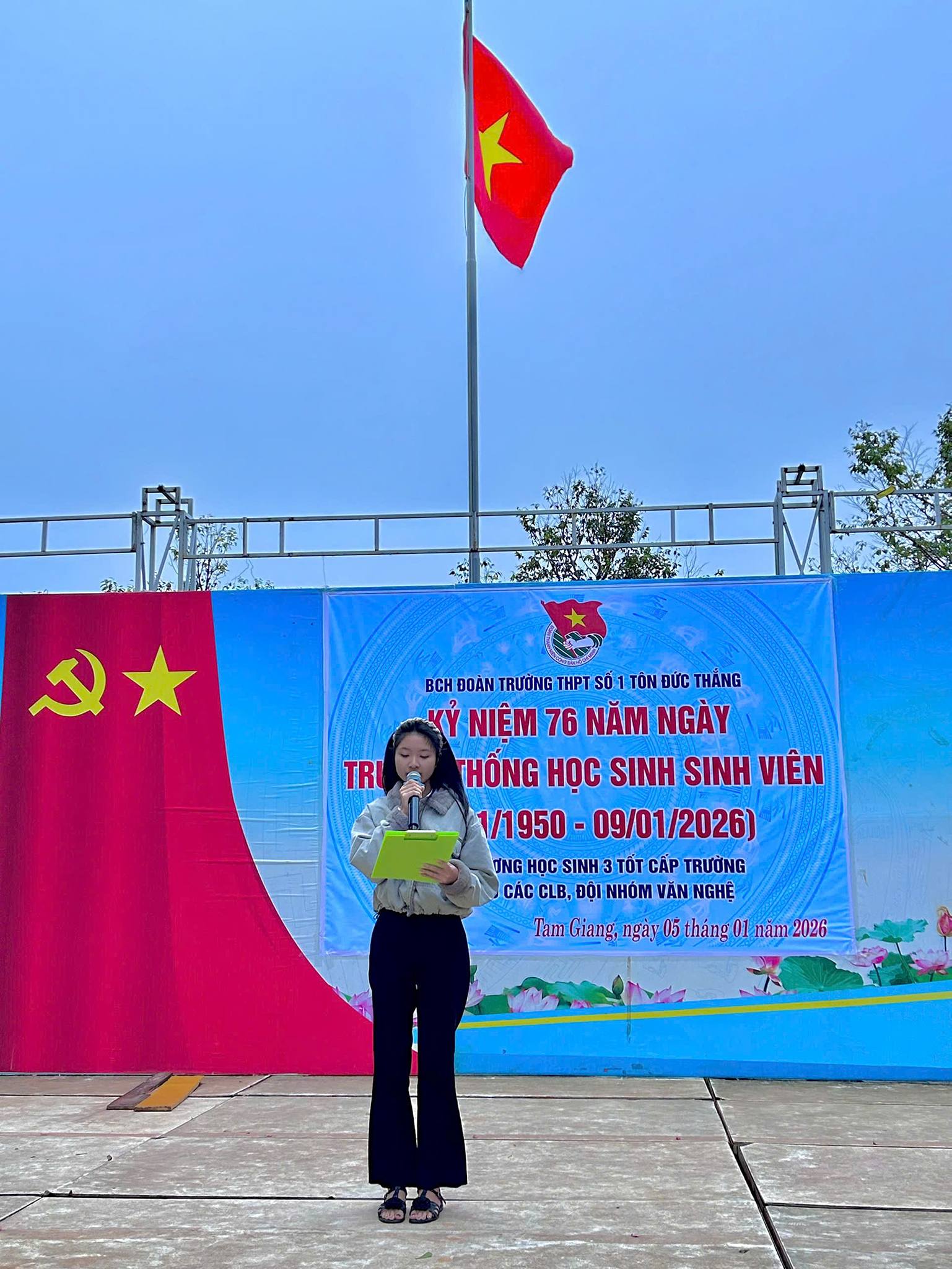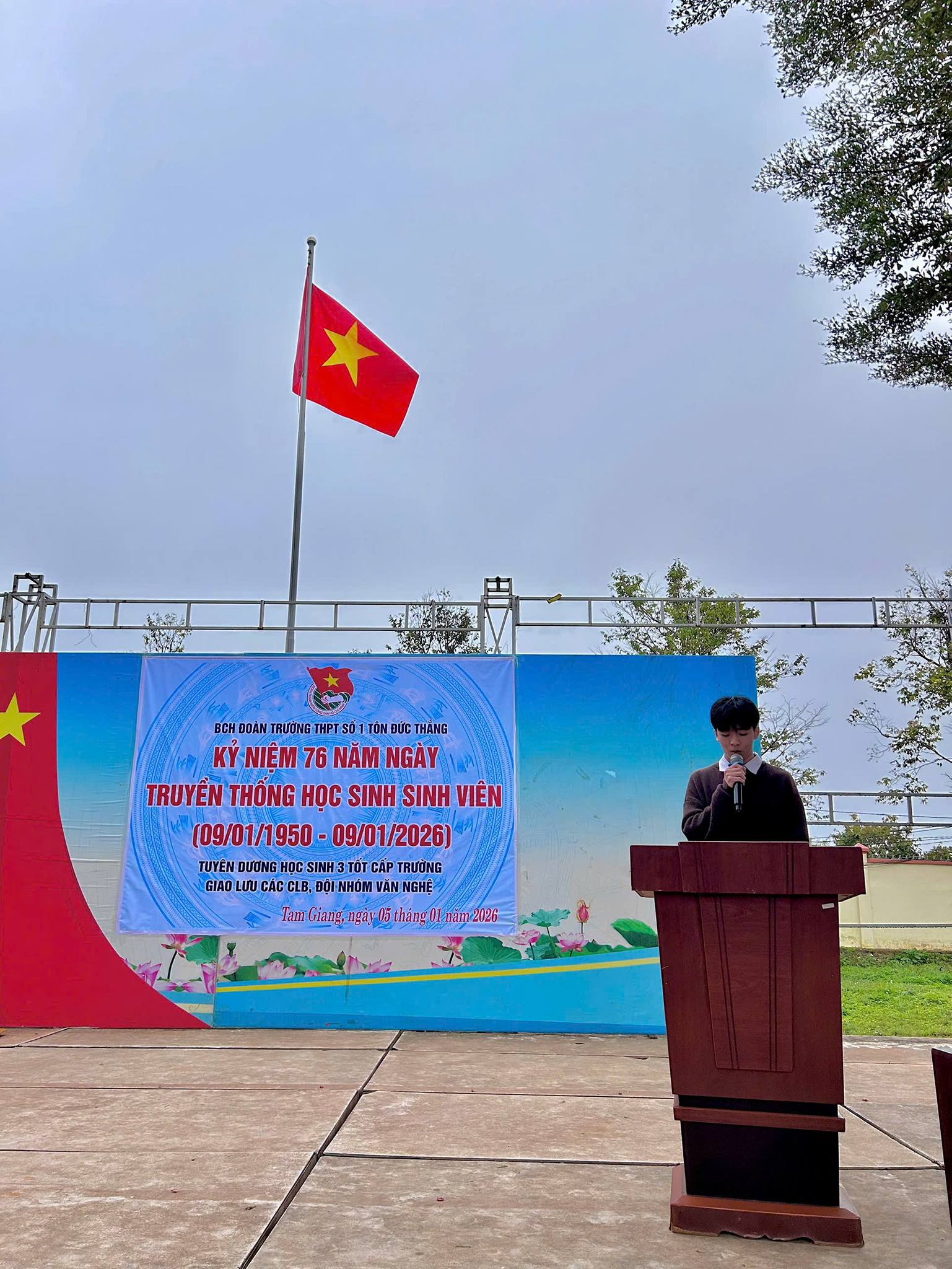 Sáng ngày 05/01/2026 BCH Đoàn Trường THPT Số 1 Tôn Đức Thắng tổ chức Chương trình kỷ niệm 76 năm ngày truyền thống HSSV (09/01/1950_09/01/2026)