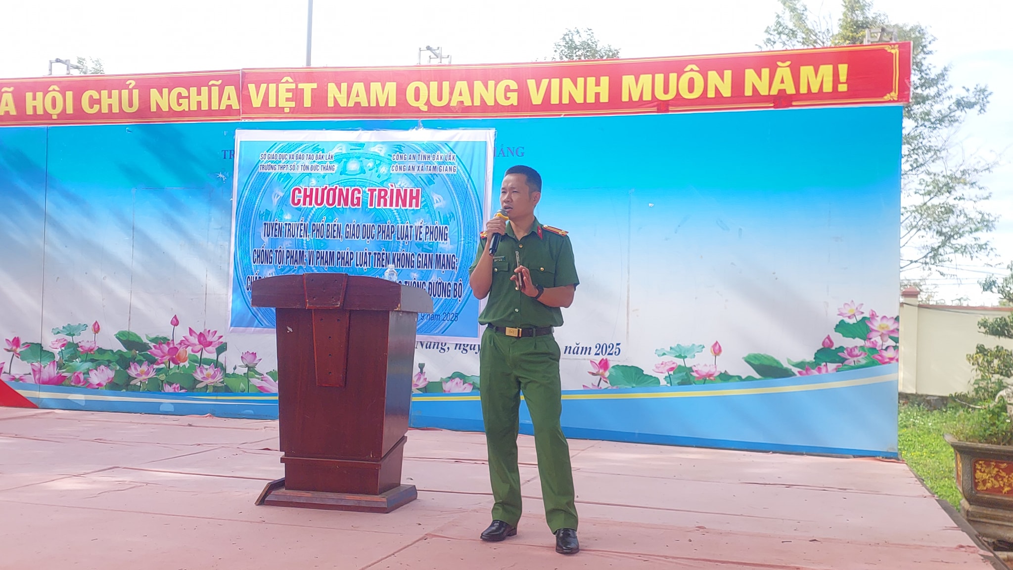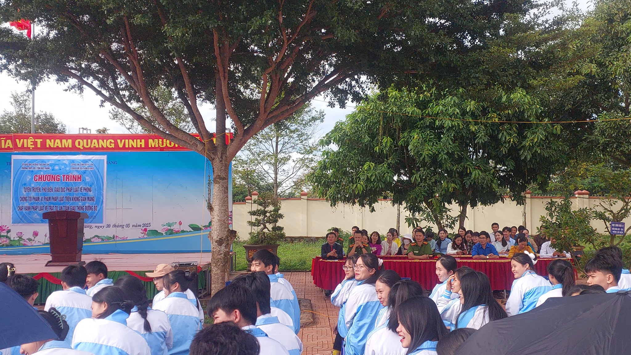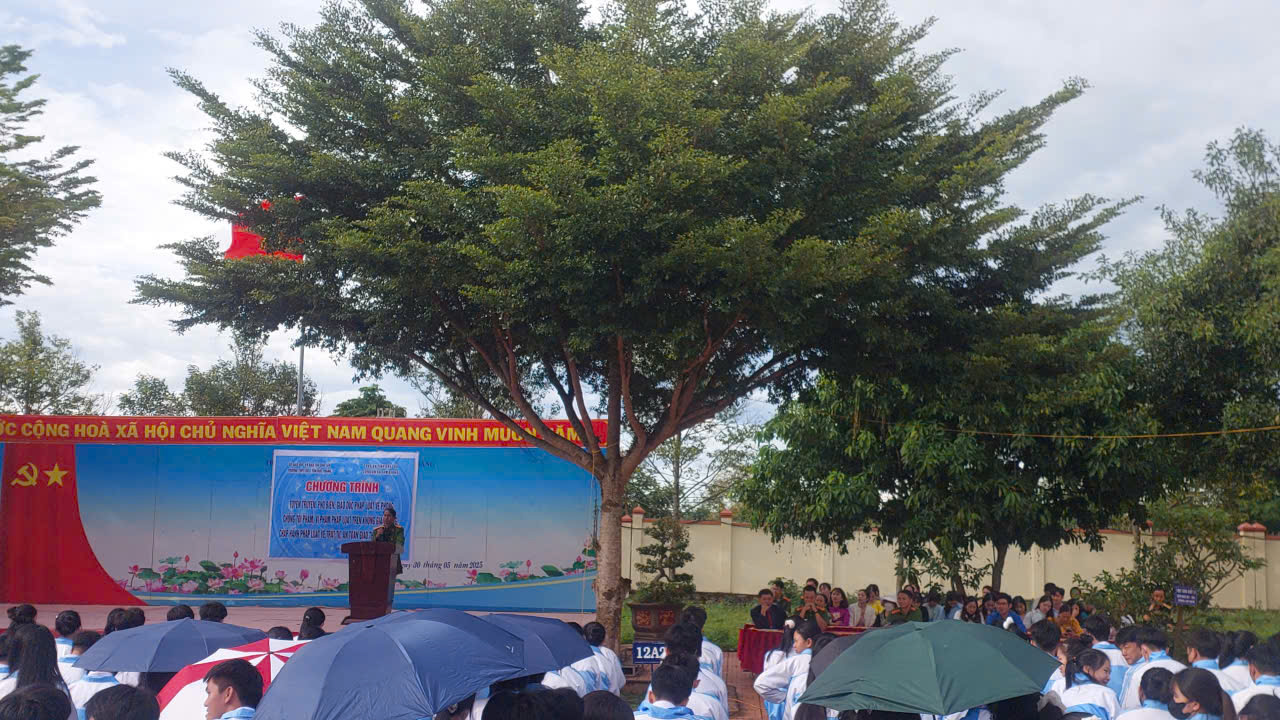 Sáng thứ 2 ngày 29/9/2025 Trường THPT Số 1 Tôn Đức Thắng phối hợp với Công an xã Tam Giang tổ chức Chương trình Tuyên truyền, phổ biến giáo dục pháp luật cho học sinh nhà trường