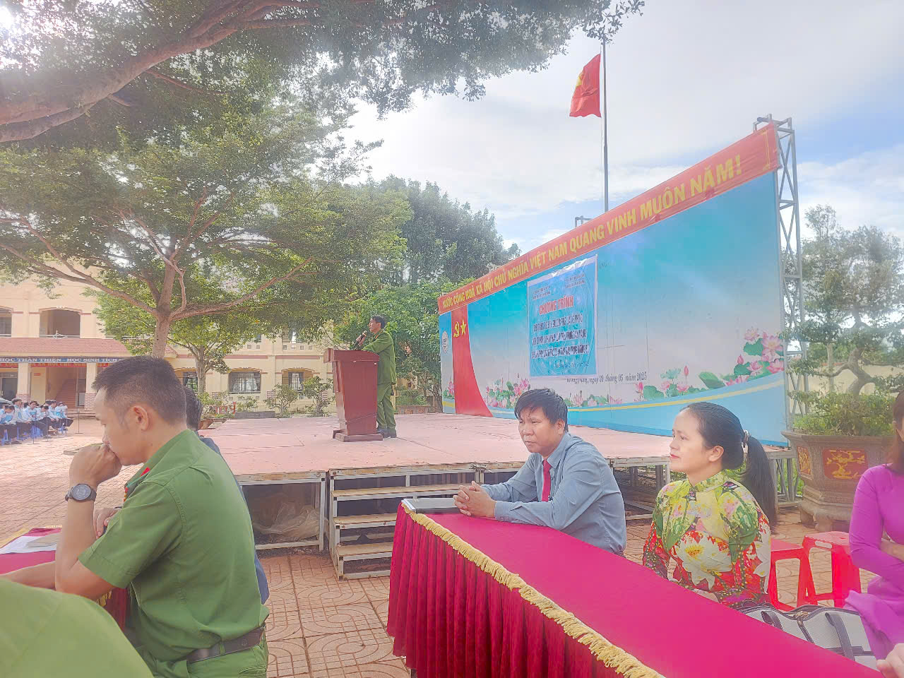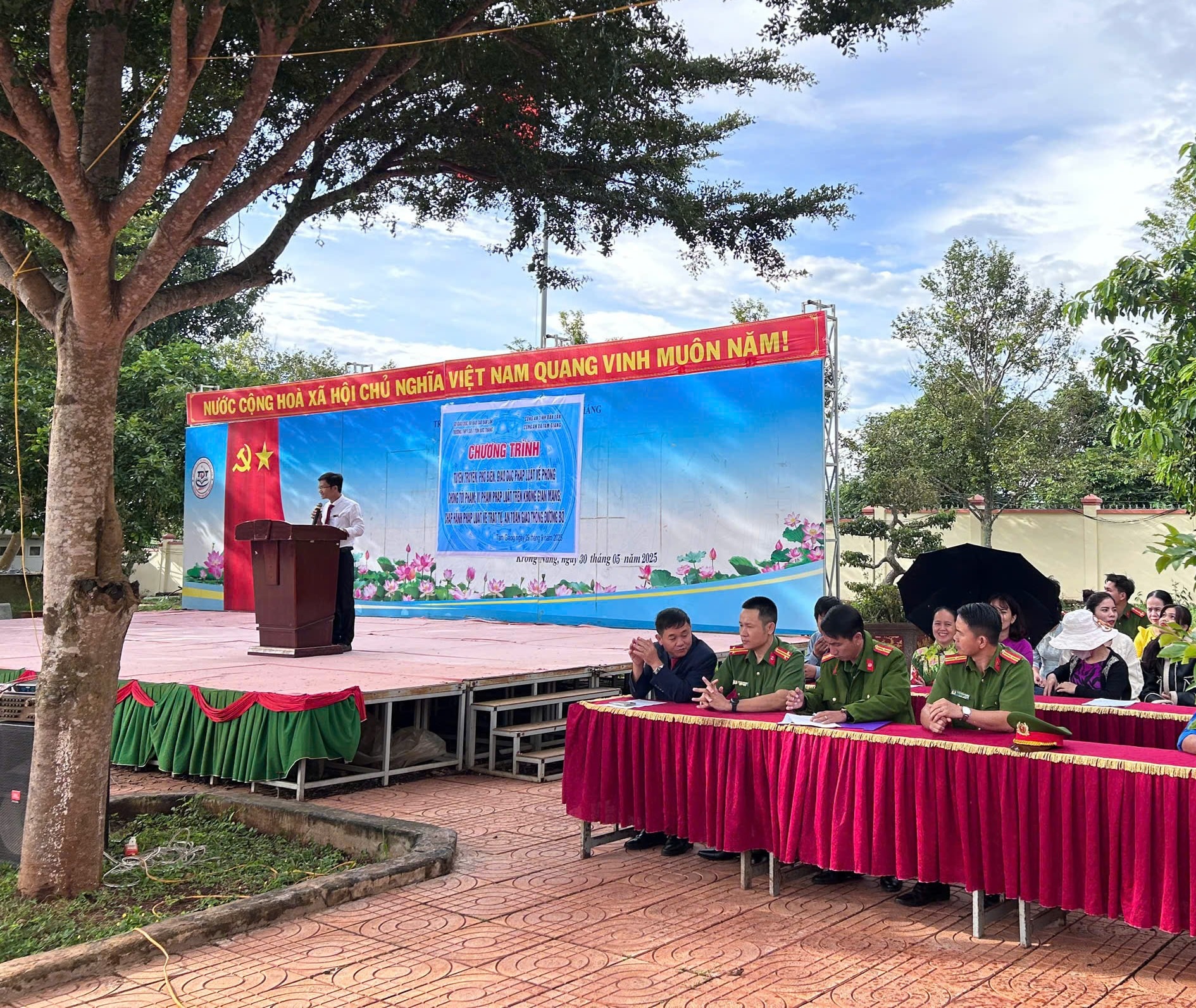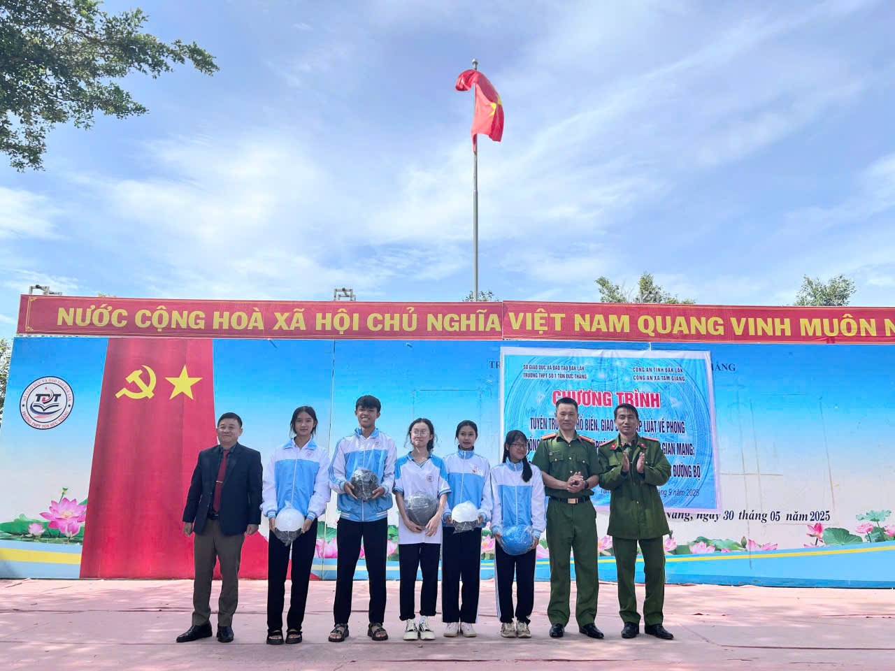 Sáng thứ 2 ngày 29/9/2025 Trường THPT Số 1 Tôn Đức Thắng phối hợp với Công an xã Tam Giang tổ chức Chương trình Tuyên truyền, phổ biến giáo dục pháp luật cho học sinh nhà trường